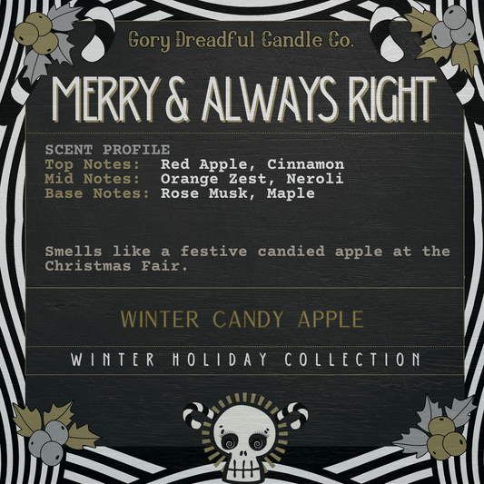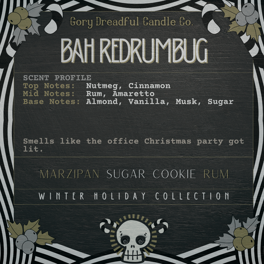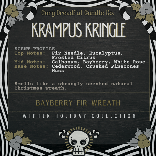 Gory Dreadful Candle Co.’s Winterween scents are an eclectic ensemble of nostalgic holiday, natural outdoor, and decadent gourmand scents, designed to ignite your festive flair and get you through the cold dreary months.
