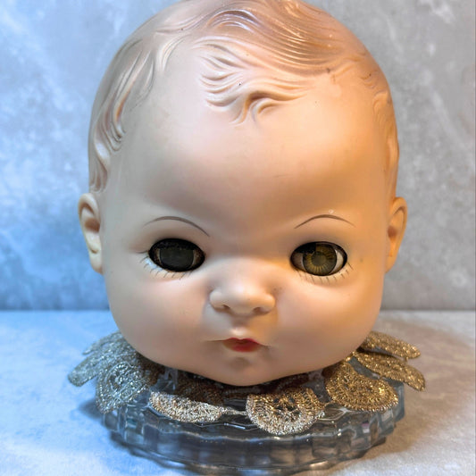 Vintage Doll Head Glass Keepsake Jar - Gothic Kitsch Creepy Cute Oddities Decor