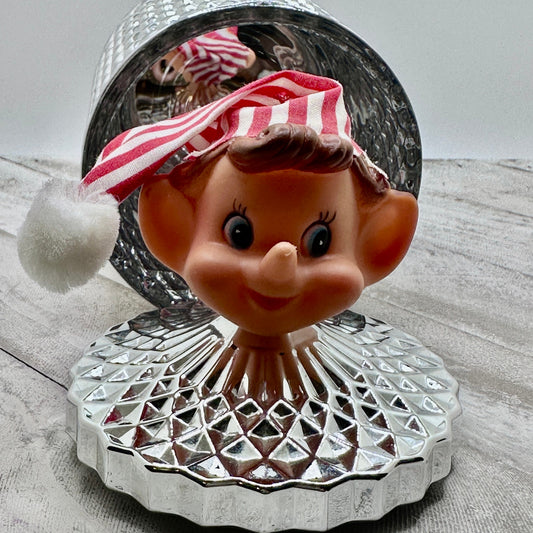 Vintage Knee Hugger Elf Jar Topper Head – Retro Pixie Christmas Decor MCM