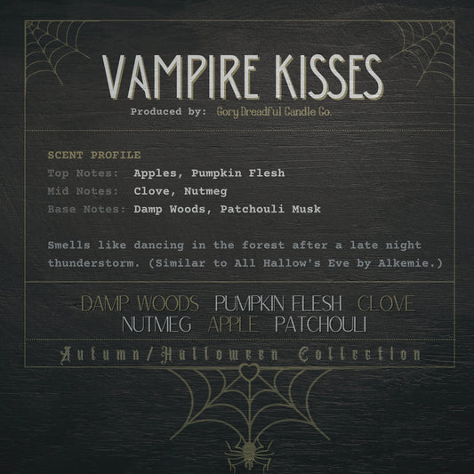 Vampire Kisses Wickless Candle: Damp Woods Pumpkin Flesh Clove Nutmeg Apple Patchouli Scent