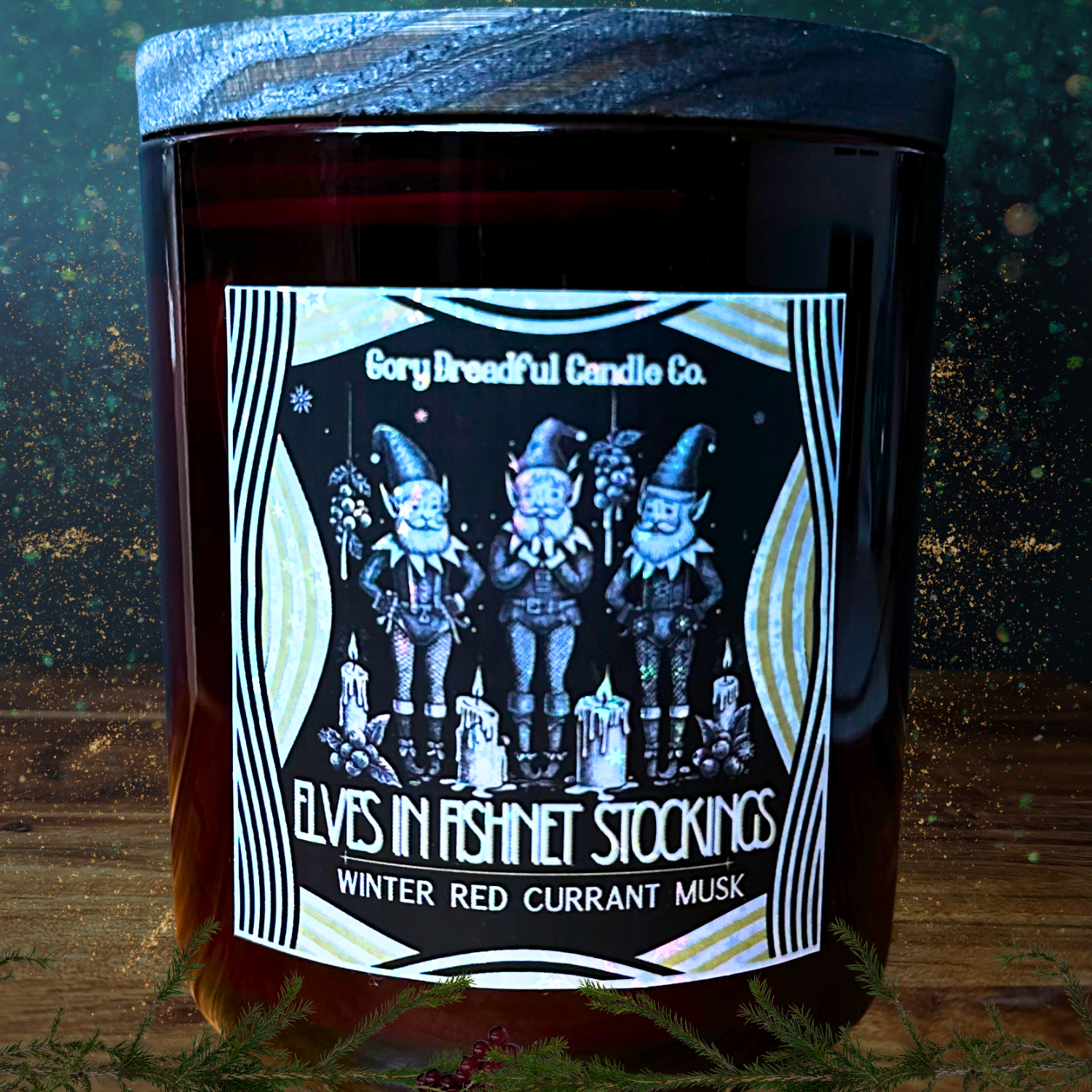 ELVES IN FISHNET STOCKINGS is a playful and seductive fragrance that captures the essence of the festive season. This scent combines the sweetness of tropical fruit and red currant with the freshness of galbanum and orange peel, creating a juicy and vibrant contrast. The heart of the fragrance reveals a floral bouquet of cassis, rhubarb, and geranium, adding a touch of sophistication and elegance. The base of the fragrance is warm and cozy, with notes of fir balsam and musk, evoking the feeling of cozying up with a warm blanket. ELVES IN FISHNET STOCKINGS is the ultimate go-to scent for when you feel naughty and nice, and want to spice up your holidays an extra notch.