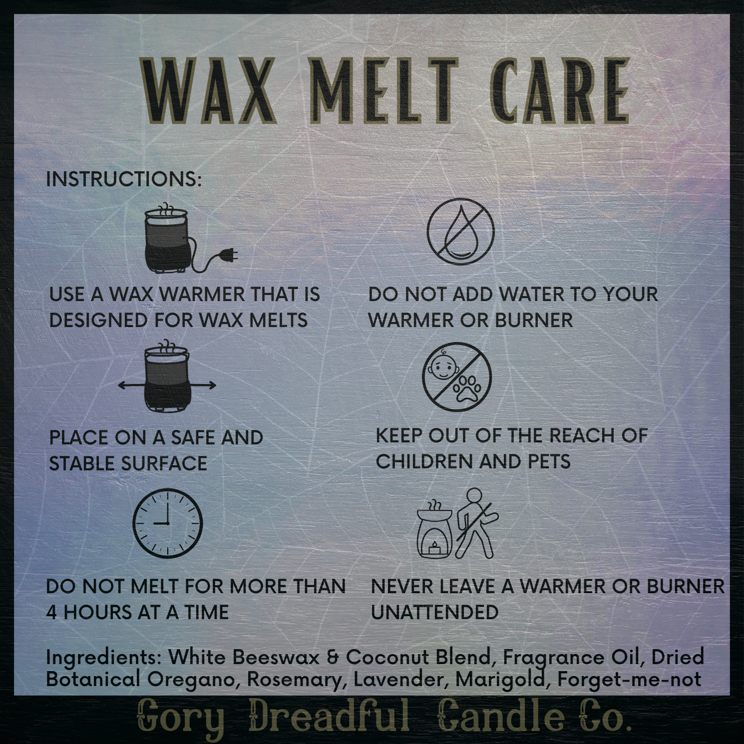 Each of our products come packaged with product safety and care instructions. Every item listing also has an image version and a text version of safety and care guides that must be followed. Gory Dreadful Candle Co. LLC is not responsible for accidents due to misuse, altering, tampering or unsafe usage practices.