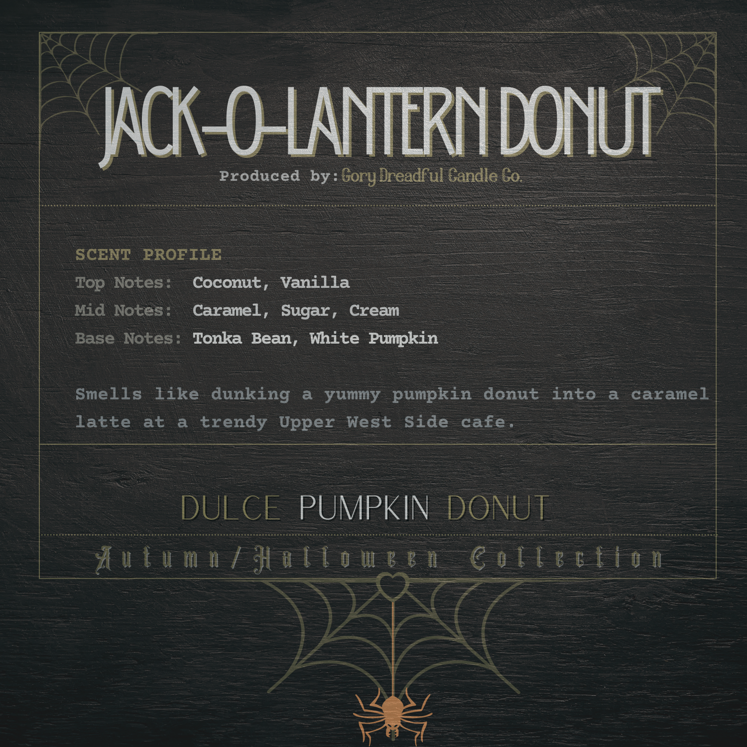 Jack-O-Lantern Donut combines sweet, and spicy notes. The top notes are coconut, vanilla, caramel, sugar, and cream, which create a sugary and creamy aroma. The middle notes are tonka bean and white pumpkin, which add a warm and cozy aroma with a hint of spice. The base notes are tonka bean and white pumpkin, which reinforce the warmth and coziness of the fragrance.