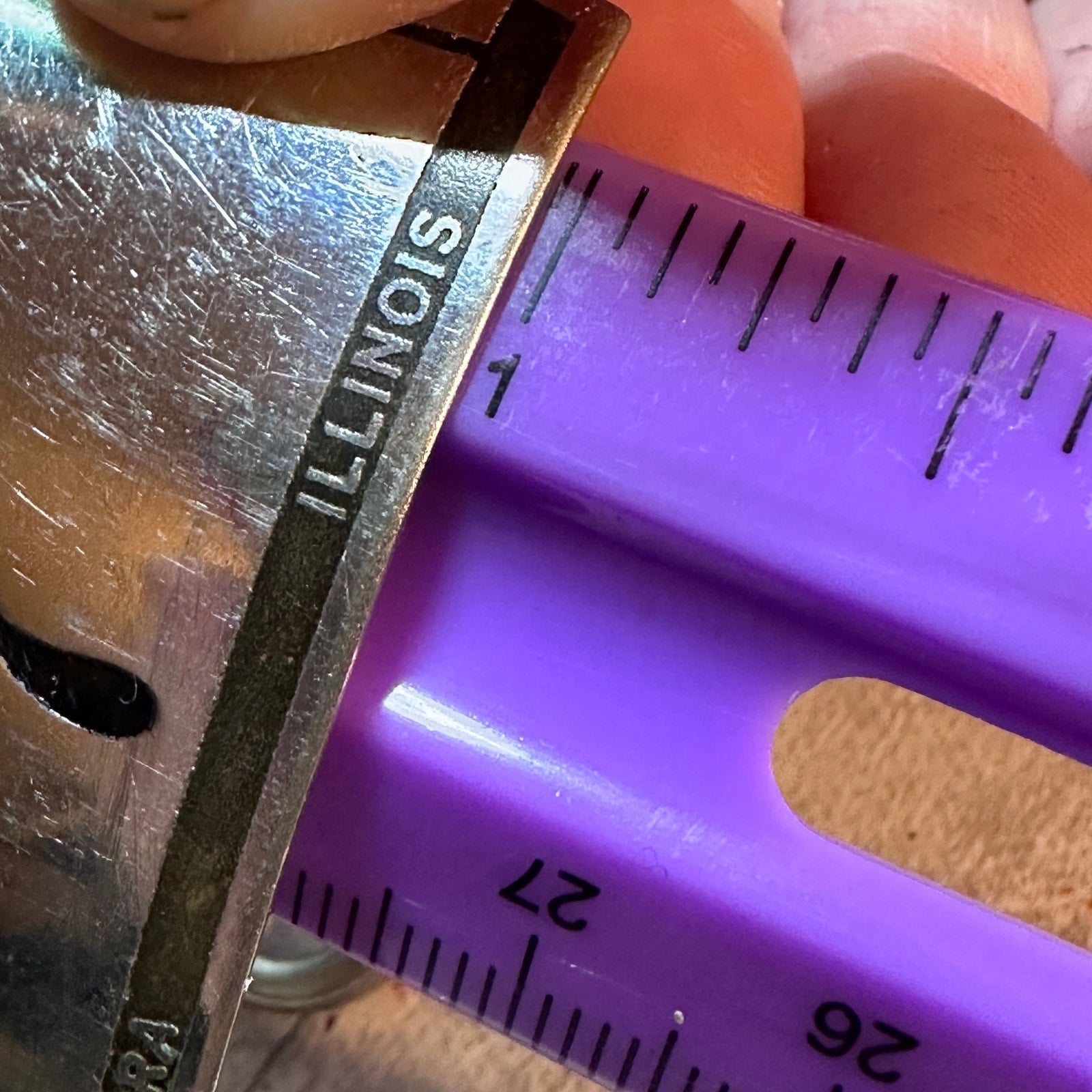Tag measures approx. 2.75" x 1" in size with about 2-3/16" center to center measurement.